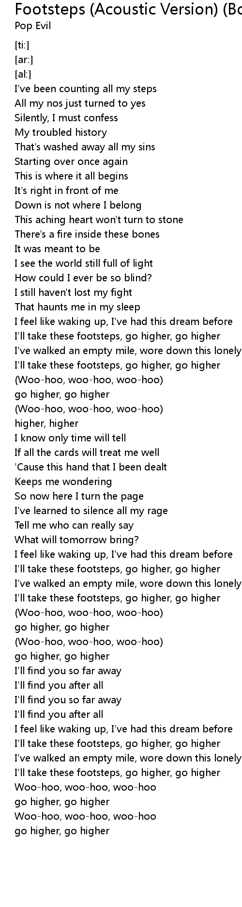 | [00:10.38] | I've been counting all my steps |