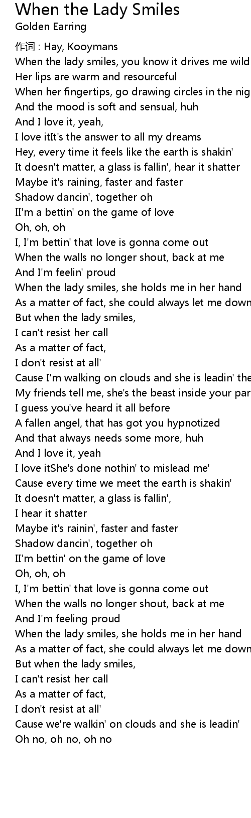 | Cause I' m walking on clouds and she is leadin' the way | |