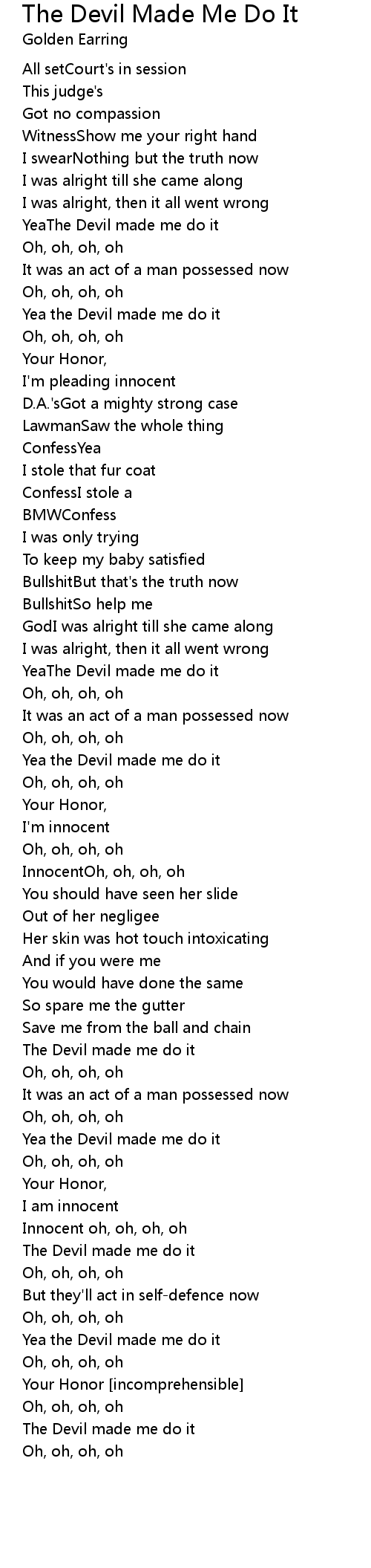 The Devil Made Me Do It 歌词