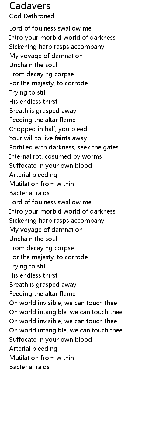 Lord of foulness swallow me |