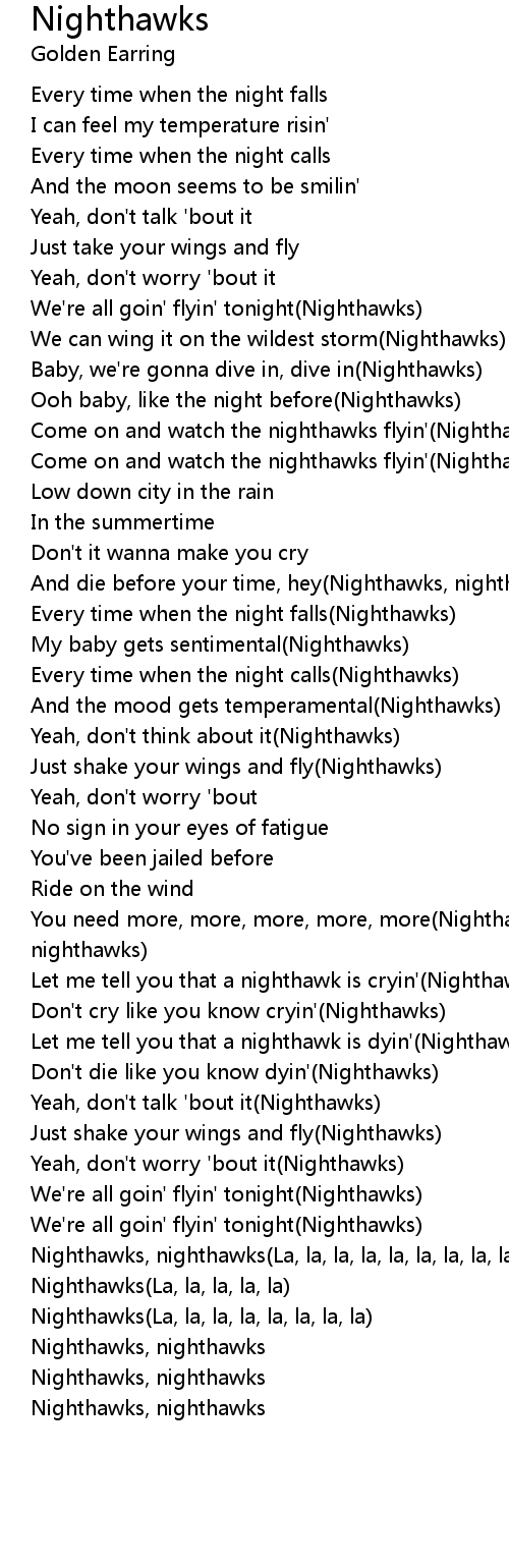 Nighthawks, nighthawks(La, la, la, la, la, la, la, la, la)