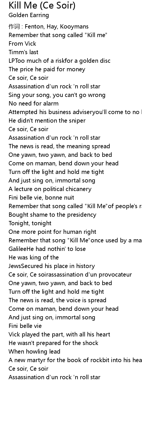 | 歌曲 | Kill Me (Ce Soir) |