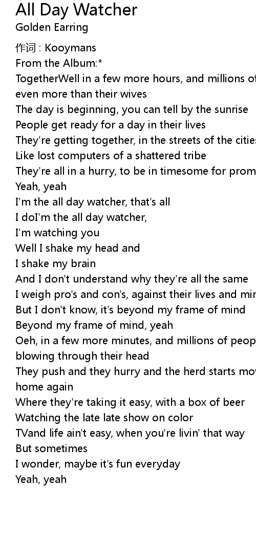| I doI' m the all day watcher, | |