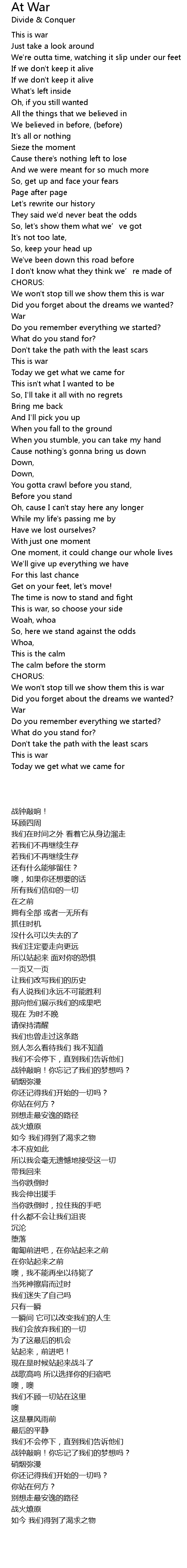 | 歌曲 | At War |