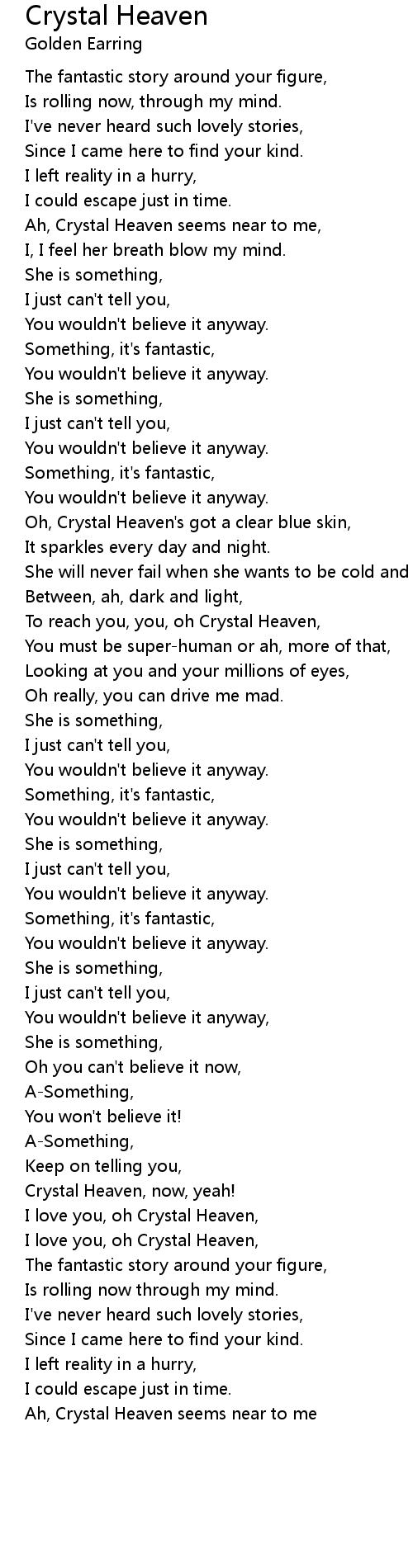 I love you, oh Crystal Heaven, |