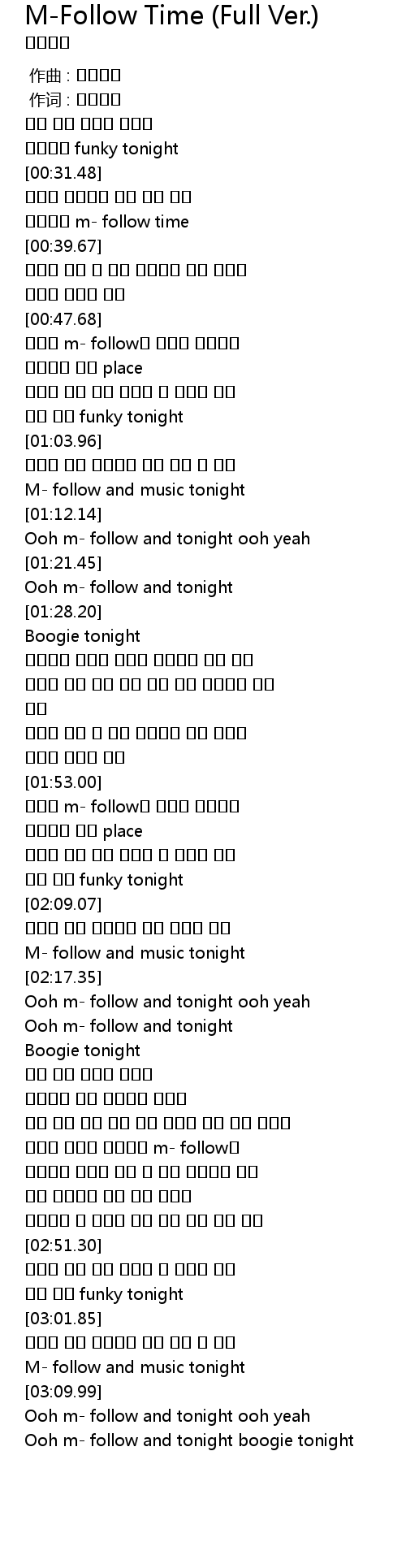 | [03:19.94] | Ooh m follow and tonight boogie tonight |