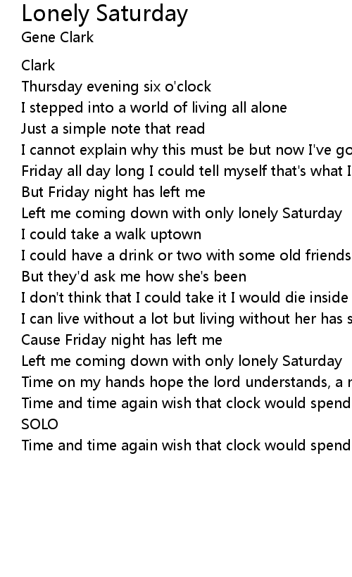 Time and time again wish that clock would spend this lonely Saturday |