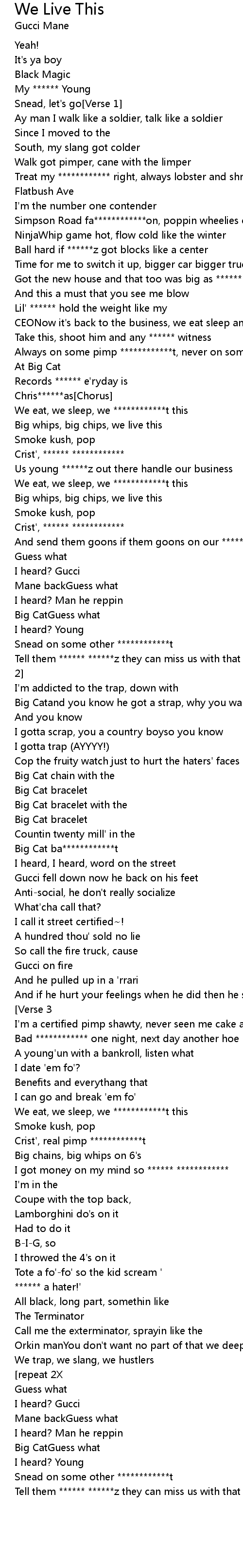 Tell them ****** ******z they can miss us with that sucker ************t[Verse 2] |