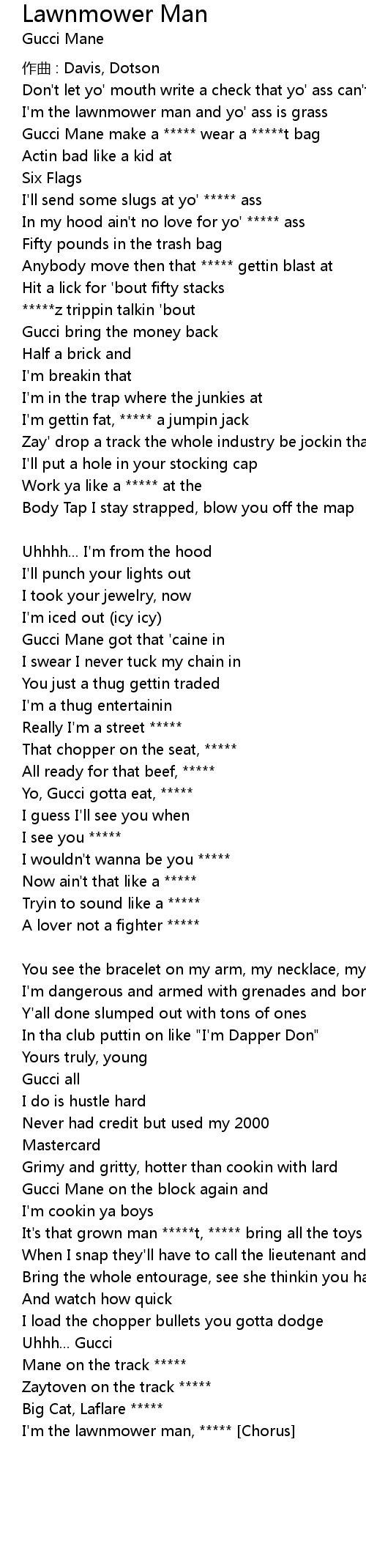 | I'm the lawnmower man and yo' ass is grass | |