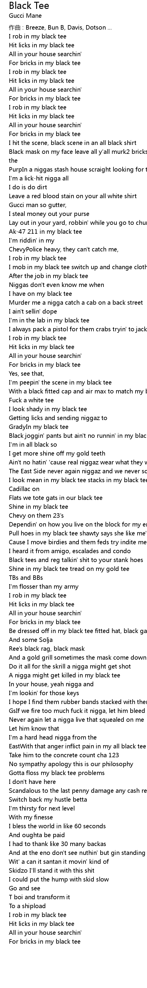 | Black joggin' pants but ain't no runnin' in my black tee | |