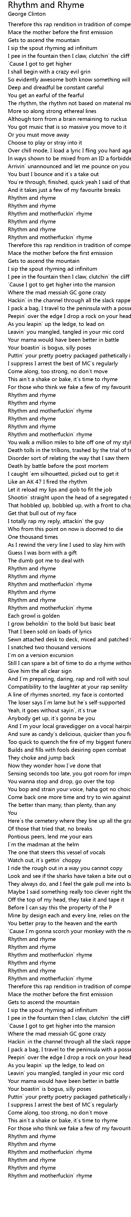 | Still I can spare a bit of time to do a rhyme without swearin | |