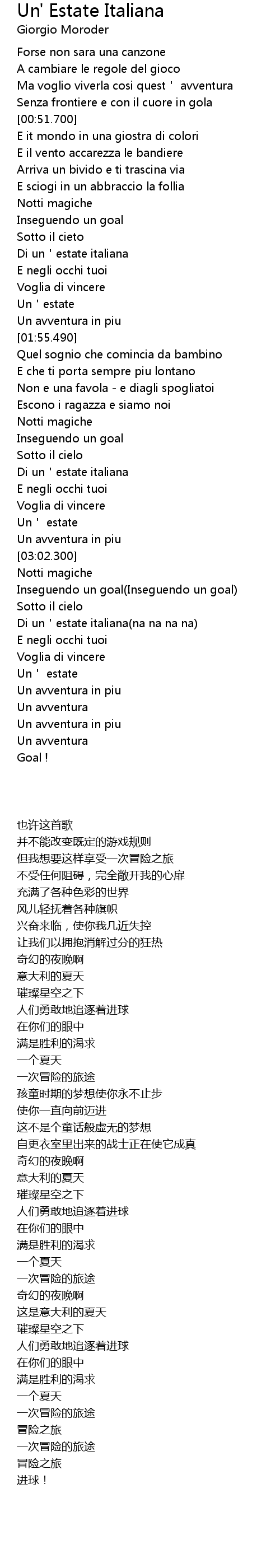 | [03:30.770] | Di un'estate italiana(na na na na) |