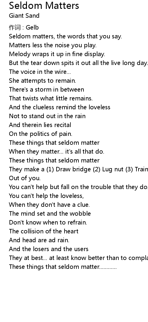 | 歌曲 | Seldom Matters |