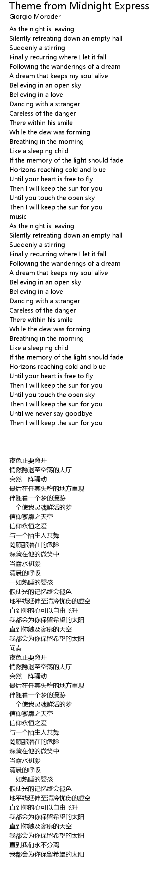 Then I will keep the sun for you |