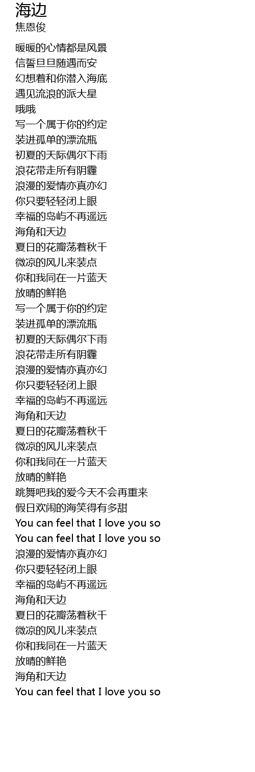 | [03:25.77] | hǎi jiǎo hé tiān biān |