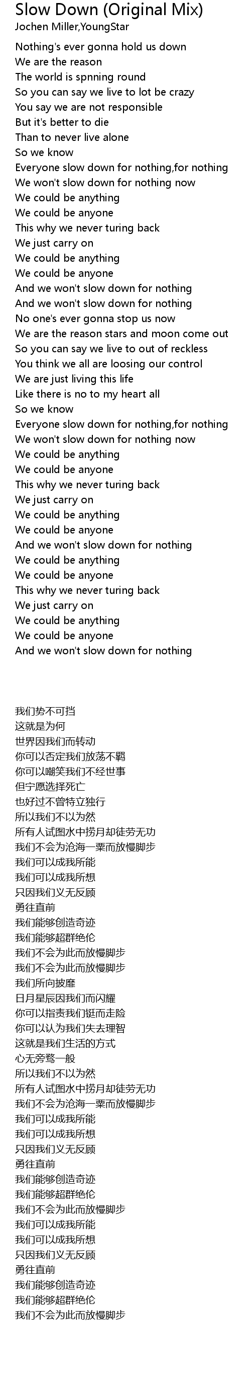Everyone slow down for nothing,for nothing |