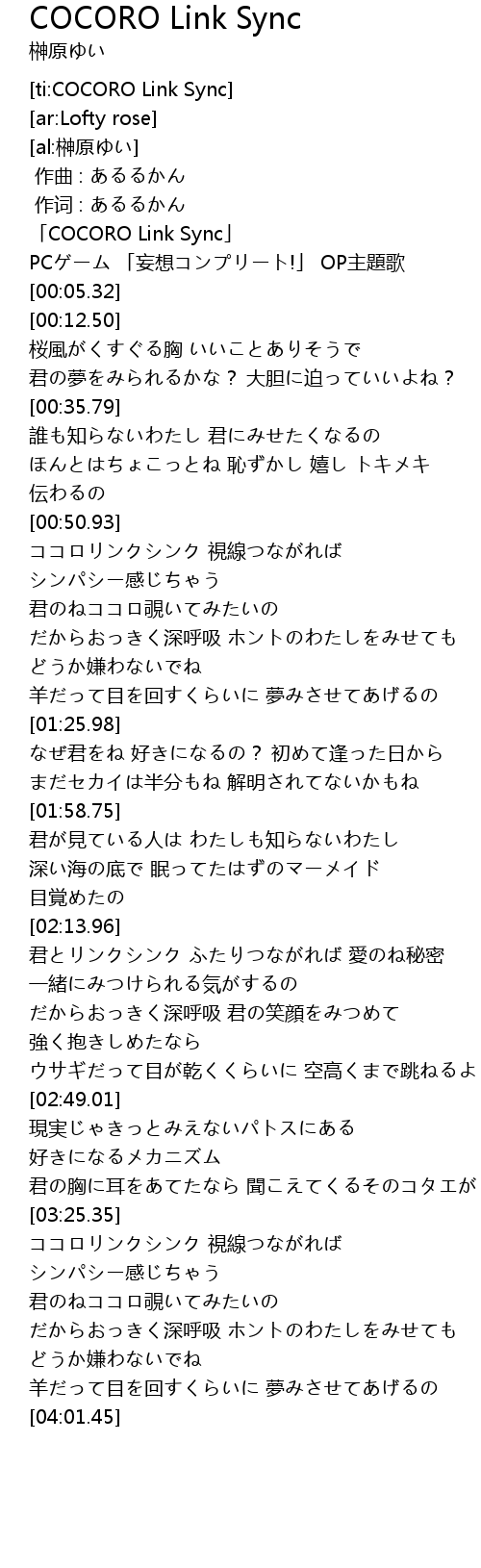 | [00:03.26] | PCゲーム 「妄想コンプリート!」 OP主題歌 |