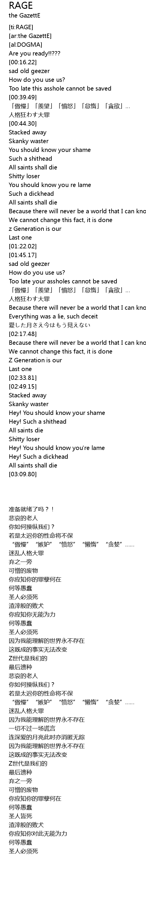 | [01:56.90] | Too late your assholes cannot be saved |