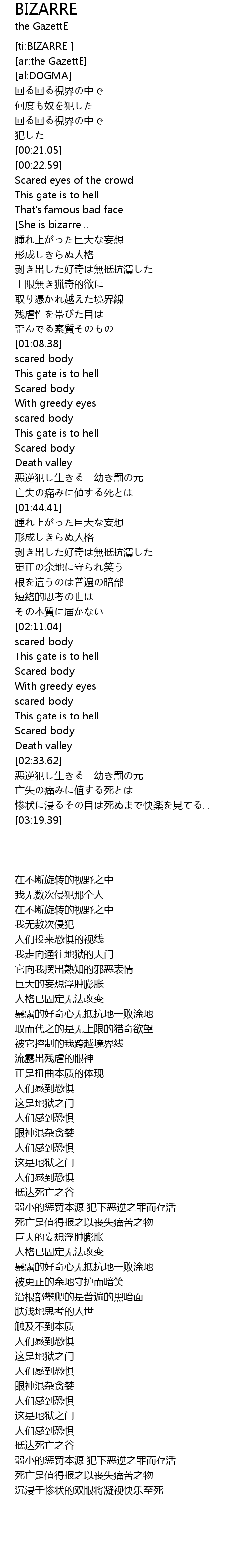 | [03:00.74] | 惨状に浸るその目は死ぬまで快楽を見てる... |
