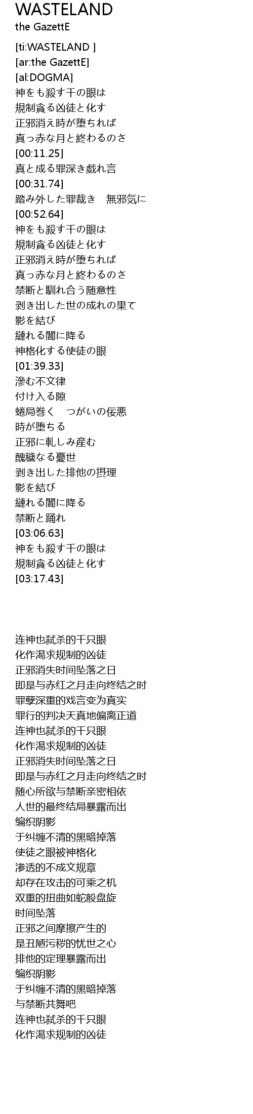 | [00:42.66] | 踏み外した罪裁き 無邪気に |