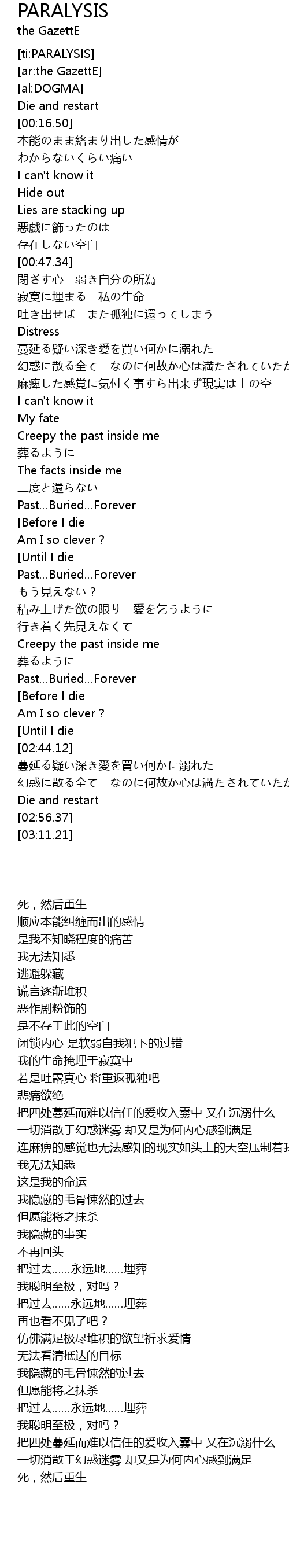 | [02:03.06] | Past…Buried…Forever |