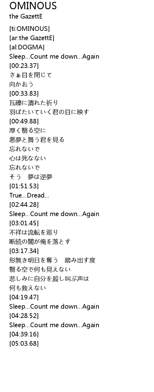 | [00:37.15] | 瓦礫に潰れた祈り |