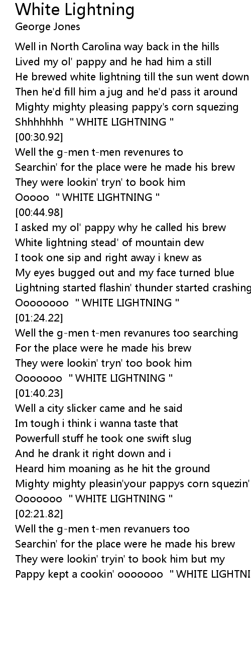 | [02:32.12] | Pappy kept a cookin' ooooooo "WHITE LIGHTNING |