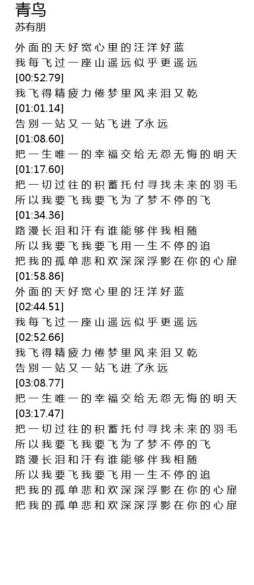 | [03:01.42] | 告 别 一 站 又 一 站 飞 进 了永 远 |