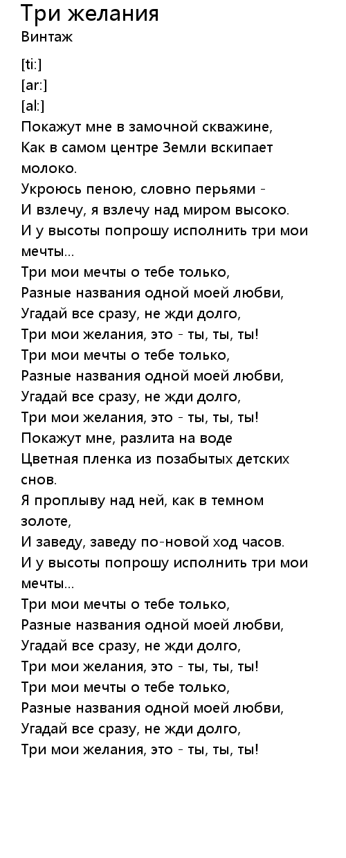 Три желания 歌词