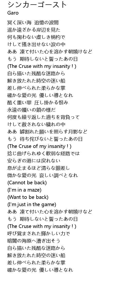 | [00:57.000] | The Cruse with my insanity ! |