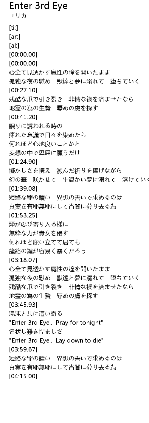| [03:49.64] | " Enter 3rd Eye... Pray for tonight" |