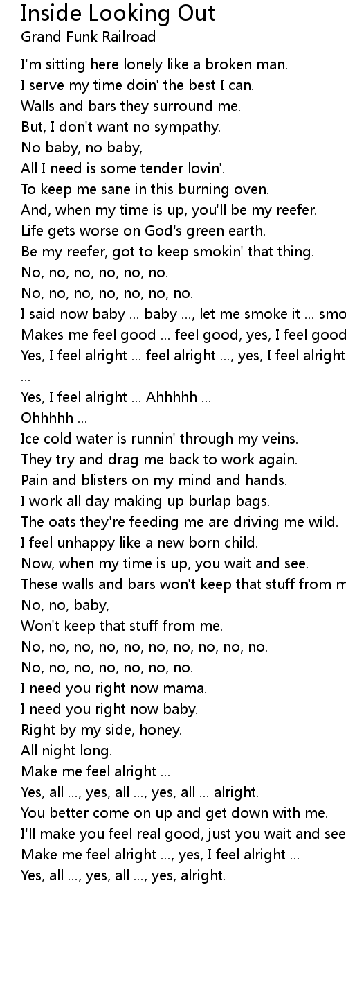 Yes, I feel alright ... feel alright ..., yes, I feel alright ... feel alright ... |