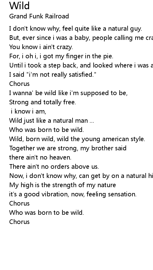 Wild, born wild, wild the young american style. |