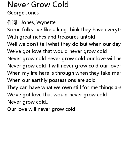 | Never grow cold never grow cold our love will never grow cold | |
