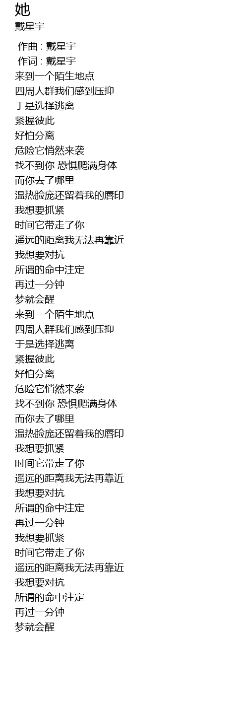 | [00:01.00] | 作词 : 戴星宇 |