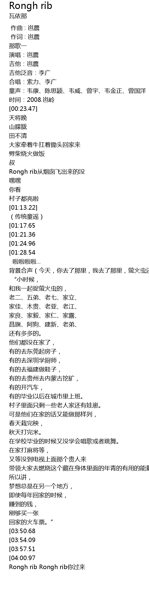 | [04:03.48][03:50.68] | Rongh rib Rongh rib你过来 |