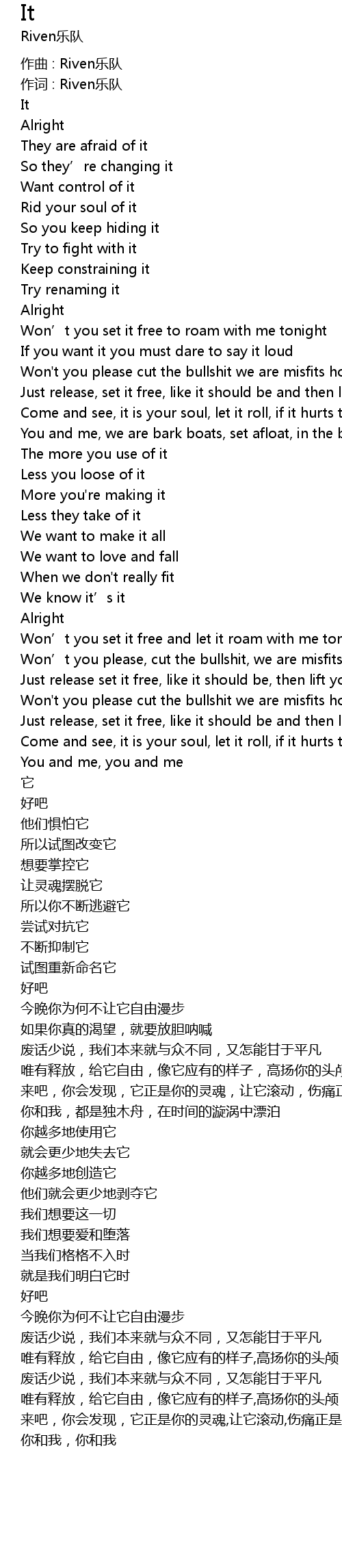 | 歌曲 | It |