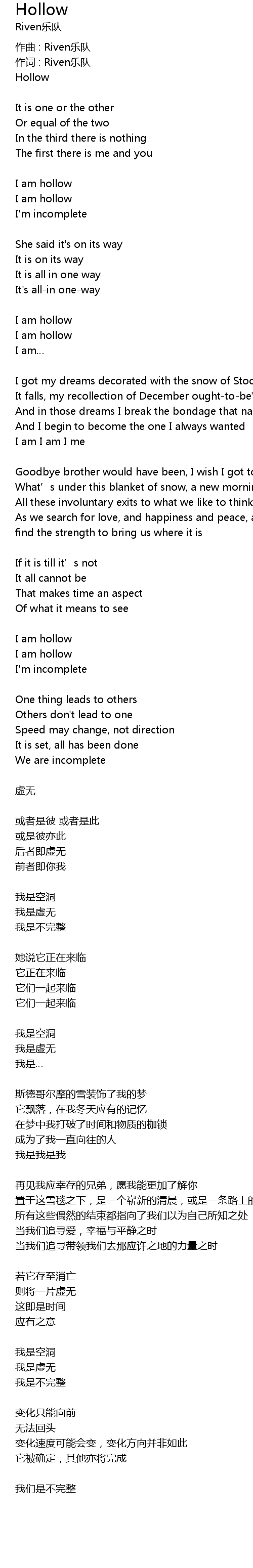 | 作词 : Riven乐队 | |