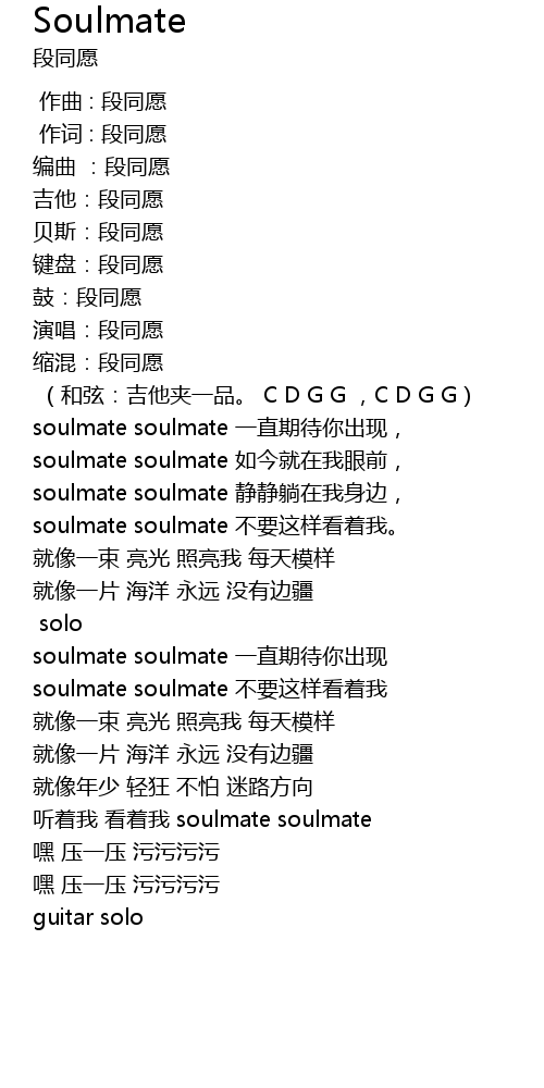| [02:24.03] | soulmate soulmate 一直期待你出现 |