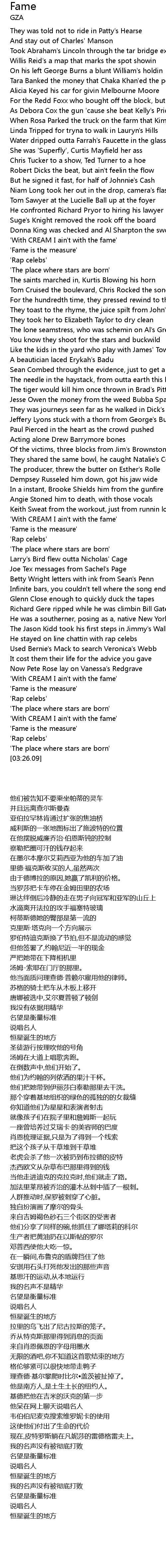 'With CREAM I ain't with the fame' |