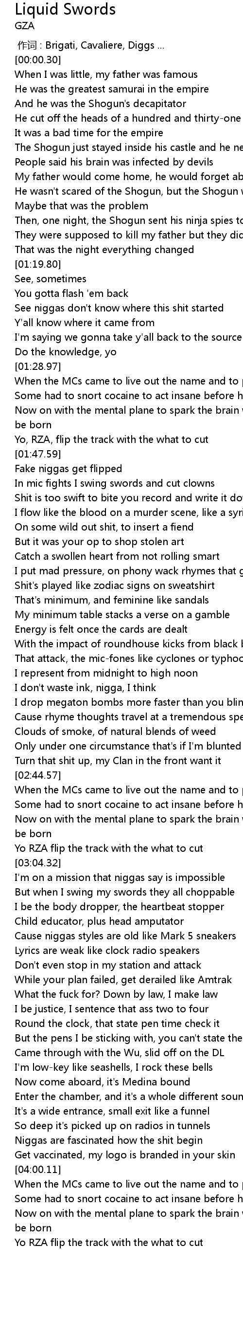 | [02:59.95] | Yo RZA flip the track with the what to cut |