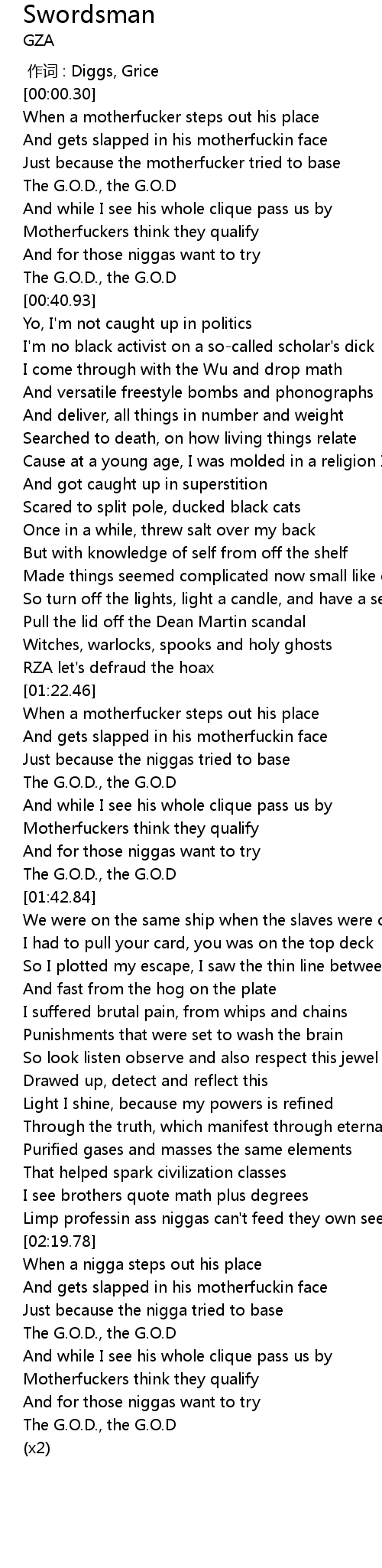 | [02:26.67] | The G.O.D., the G.O.D |