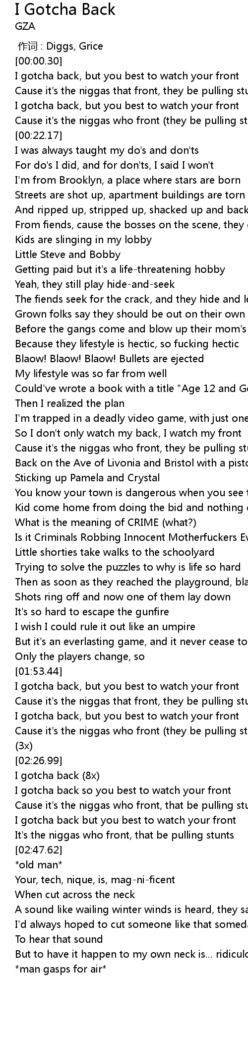 | [02:42.19] | I gotcha back but you best to watch your front |