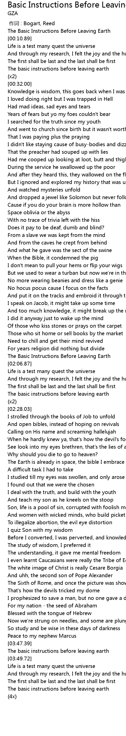 | [00:00.30] | The Basic Instructions Before Leaving Earth |