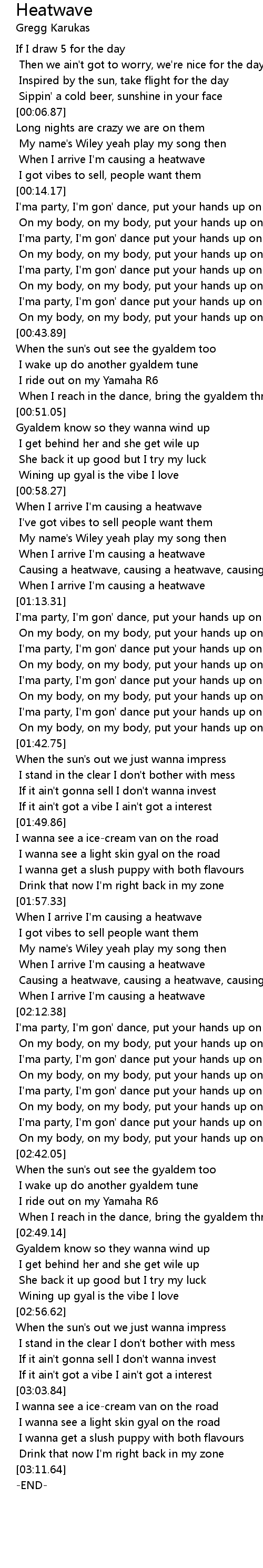 [03:05.71] I wanna see a light skin gyal on the road