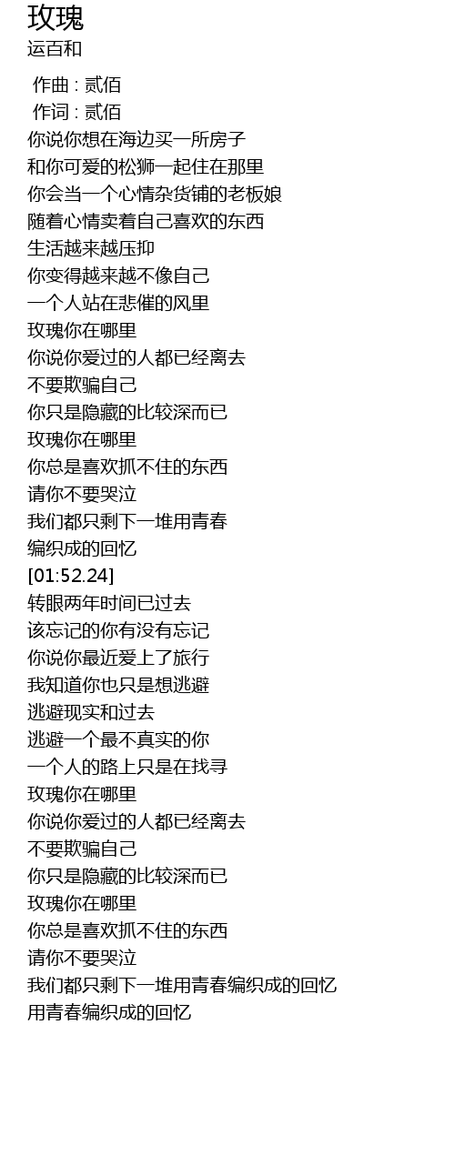 | [00:00.00] | zuò qǔ : èr bǎi |