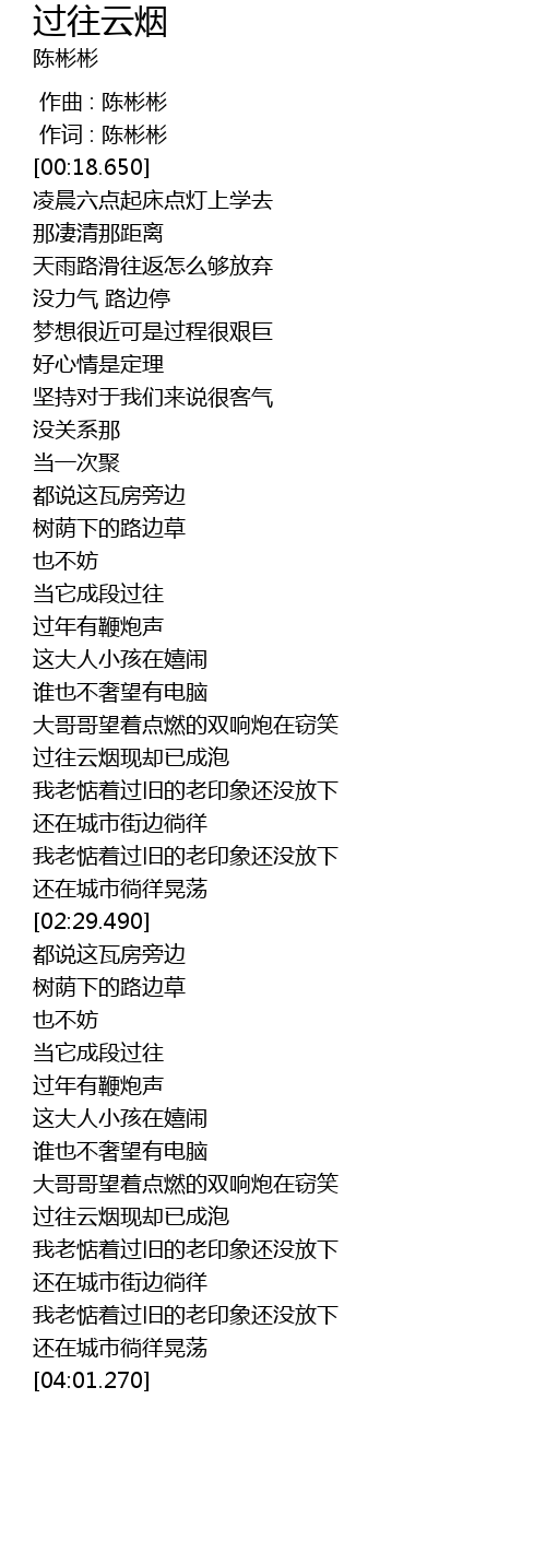 | [00:01.00] | 作词 : 陈彬彬 |