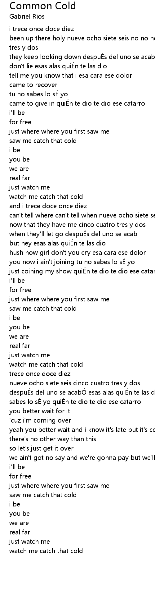 | despuÉs del uno se acabÓ esas alas quiÉn te las dio esa cara ese dolor tu no sabes lo sÉ yo quiÉn te dio te dio ese catarro | |
