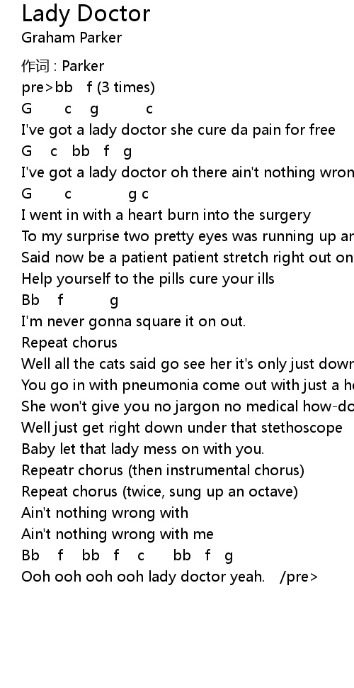 | Ooh ooh ooh ooh lady doctor yeah. /pre> |