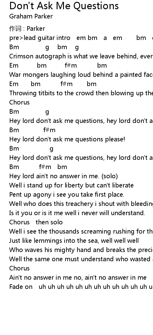 | Hey lord don't ask me questions, hey lord don't ask me questions | |